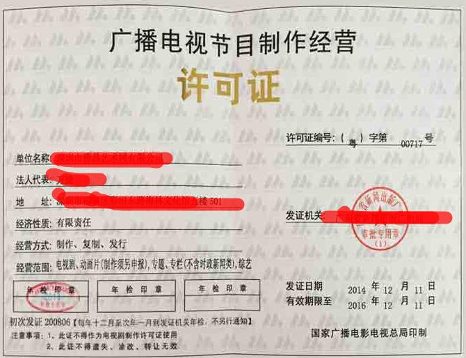 2《廣播電視節目制作經營管理規定》(廣電總局令第34號)第八條:在京的中央單位及其直屬機構申請《廣播電視節目制作經營許可證》,報廣電總局審批;其他機構申請《廣播電視節目制作經營許可證》,向所在地廣播電視行政部門提出申請,經逐級審核后,報省級廣播電視行政部門審批。